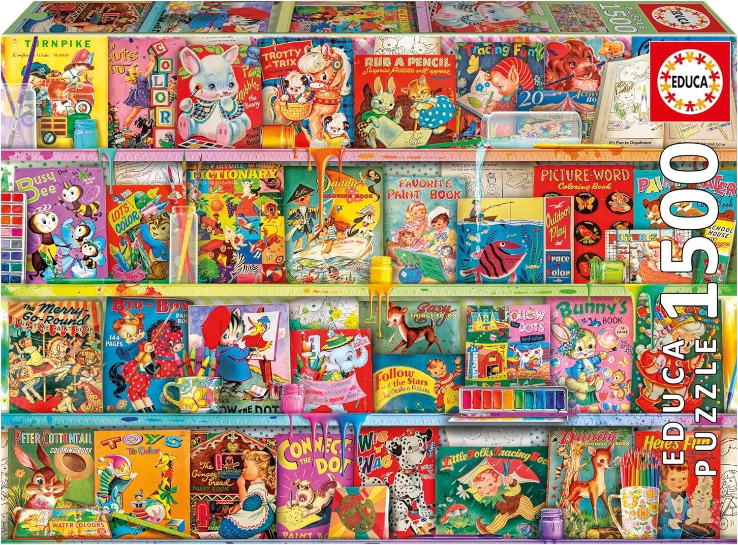 Descoperă bucuria asamblării cu puzzle-ul EDUCA de 1500 de piese, cu motivul unui colț de lectură kitsch și distractiv. Pachetul include adeziv gratuit pentru fixarea ușoară a imaginii finale cu dimensiunile de aprox. 85 × 60 cm. Ideal pentru iubitorii de cărți care doresc să se bucure de o execuție de calitate și culori intense în lungile momente de relaxare.