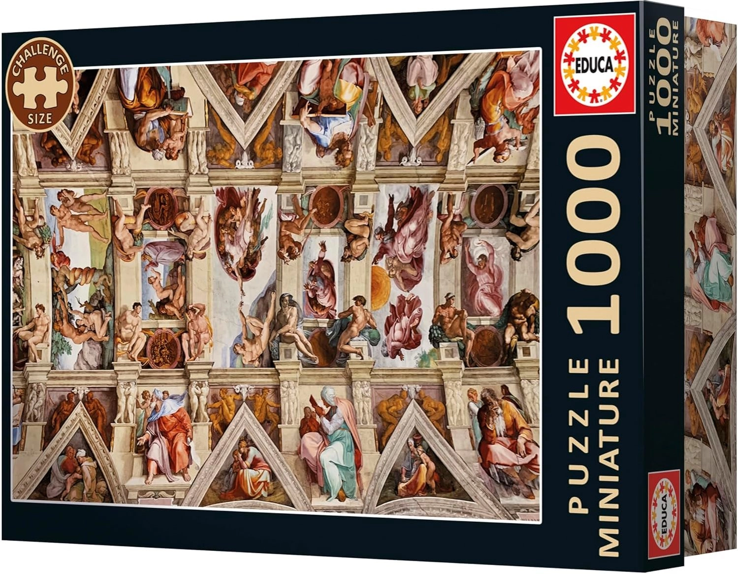 Puzzle-ul miniatură EDUCA cu motivul Capelei Sixtine oferă o experiență intensă de asamblare într-un spațiu redus. Datorită pieselor mici, încape practic oriunde, păstrând totodată bogăția detaliilor faimoasei fresce renascentiste. În pachet găsești și adeziv gratuit, astfel încât îți poți fixa permanent creația imediat după finalizare și o poți expune.