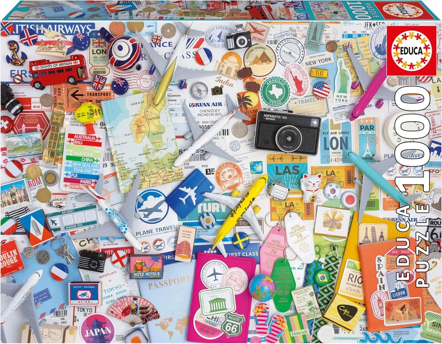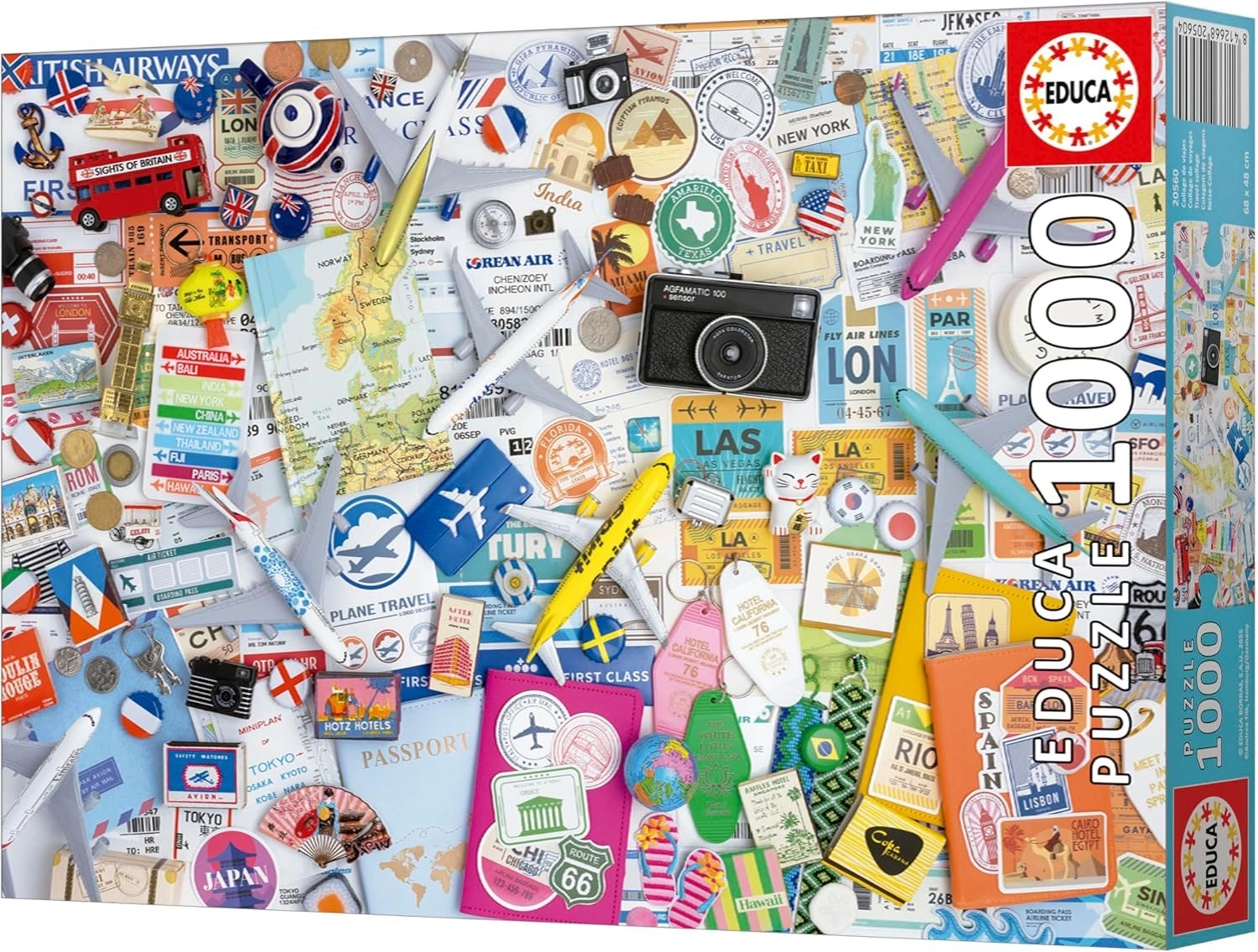 Bucurați-vă de relaxare cu un puzzle de calitate, care oferă 1000 de piese, iar în pachet este inclus adeziv gratuit pentru fixarea ușoară a imaginii finalizate. După asamblare, puzzle-ul are dimensiunea de aproximativ 68 × 48 cm și impresionează prin colajul detaliat cu motive de călătorie.