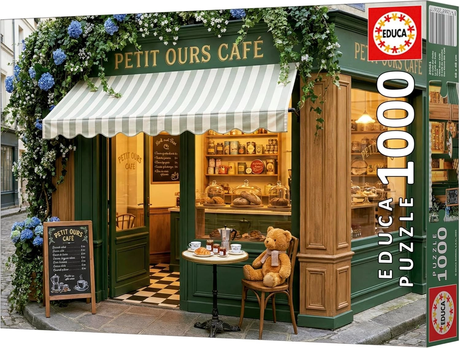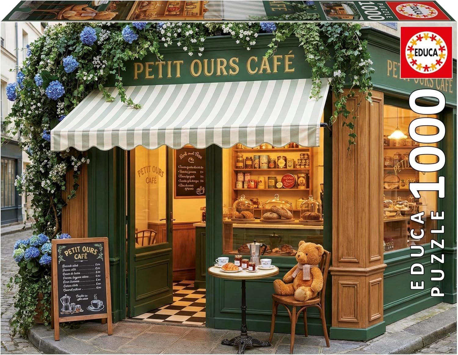 Bucurați-vă de relaxare cu puzzle-ul de calitate EDUCA, cu motivul unei cafenele adorabile pline de ursuleți. Pachetul conține 1000 de piese și un lipici GRATUIT practic pentru a fixa cu ușurință imaginea finală. După asamblare, obțineți o imagine decorativă cu dimensiunea de aprox. 68 × 48 cm.