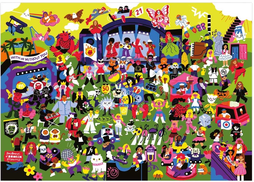 Faceți-vă timp pentru voi și pentru familie cu captivantul puzzle EDUCA Puzzlepalooza. După asamblare vă așteaptă o vânătoare unică: în ilustrație sunt ascunse 100 de referințe la muzicieni și trupe celebre. Datorită posterului inclus vă puteți lăsa ghidați sau vă puteți bucura pe deplin de provocare fără indicii.