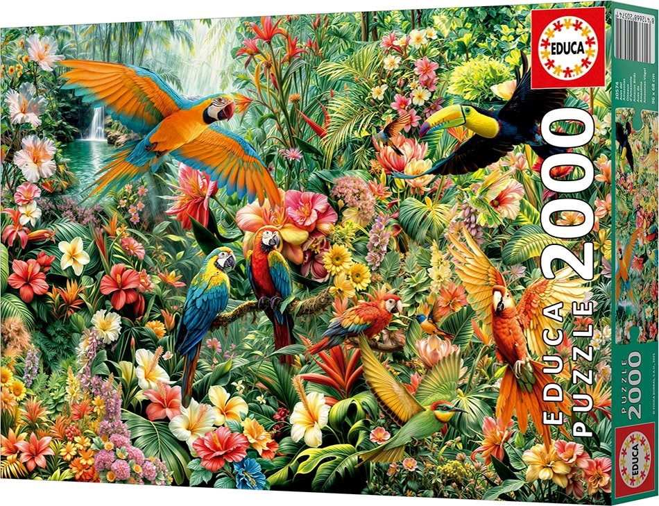 Descoperă frumusețea junglei tropicale cu puzzle-ul EDUCA „Păsările Amazoniei” de 2000 de piese. Pachetul include adezivul FIX PUZZLE gratuit, iar după asamblare obții o imagine impresionantă cu dimensiunile de aprox. 96 × 68 cm.