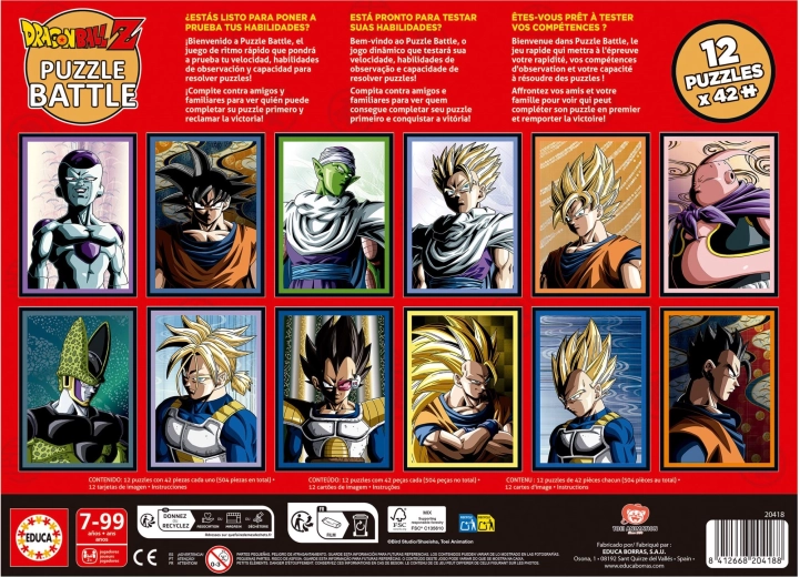 Transformă asamblarea clasică într-o distracție plină de acțiune. Bătălia de puzzle DRAGON BALL Z de la Educa aduce un concept unic, unde nu contează doar precizia, ci și viteza și spiritul competitiv. Fiecare participant ia unul dintre cele douăsprezece puzzle-uri de 42 de piese și, urmând modelul, concurează pentru a termina imaginea primul.