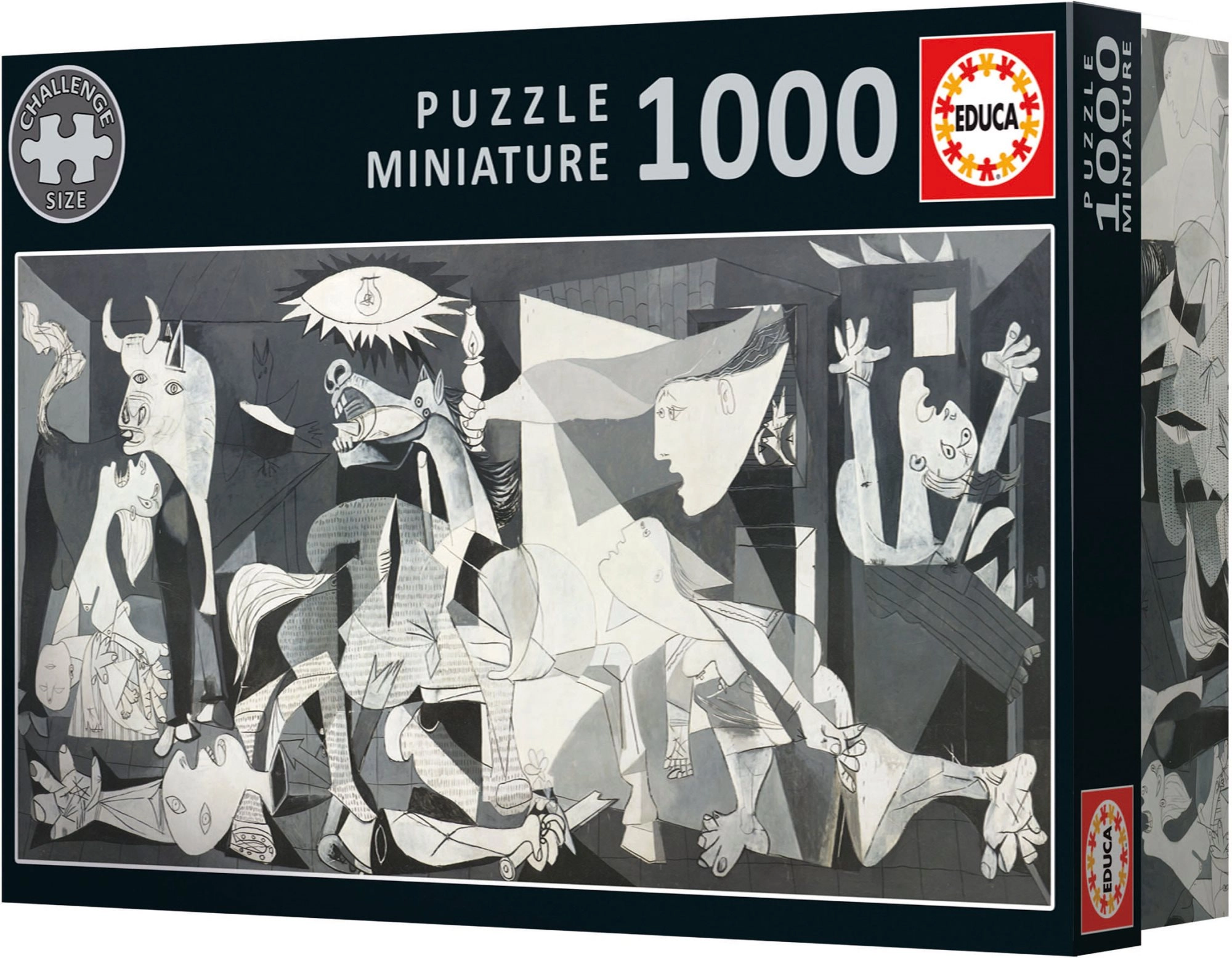 Descoperiți opera iconică a artei moderne într-o experiență de asamblare compactă: puzzle-ul panoramic miniatură Guernica (Pablo Picasso) de la EDUCA cu 1000 de piese și adeziv inclus gratuit. Datorită pieselor miniaturale cu dimensiune medie de 1,2 cm puteți asambla întregul panoramă chiar și într-un spațiu mic – imaginea finală măsoară 62,5 × 30 cm.