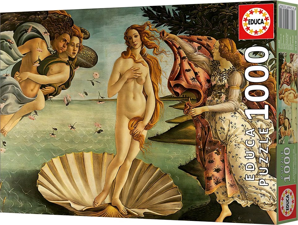 Relaxare garantată cu un puzzle de calitate EDUCA, inspirat de capodopera Nașterea lui Venus. Pachetul conține 1000 de piese, dimensiunea după asamblare este de aprox. 68 × 48 cm și include adeziv gratuit pentru fixarea ușoară a imaginii finale.