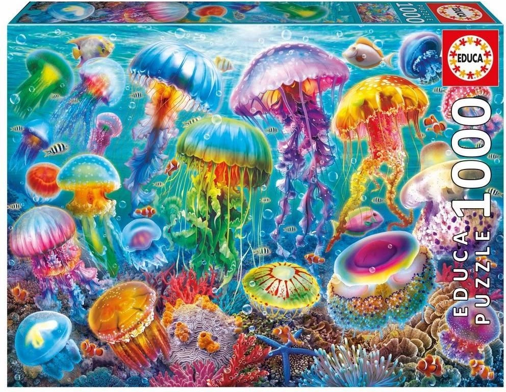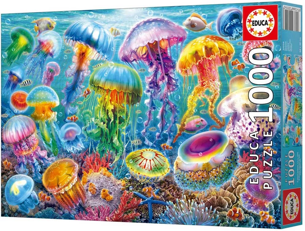 Descoperă lumea liniștitoare a creaturilor marine cu acest puzzle de înaltă calitate. Te așteaptă 1000 de piese cu un motiv meduze spectaculos, asamblare lină și lipici inclus gratuit pentru fixarea ușoară a imaginii finale.