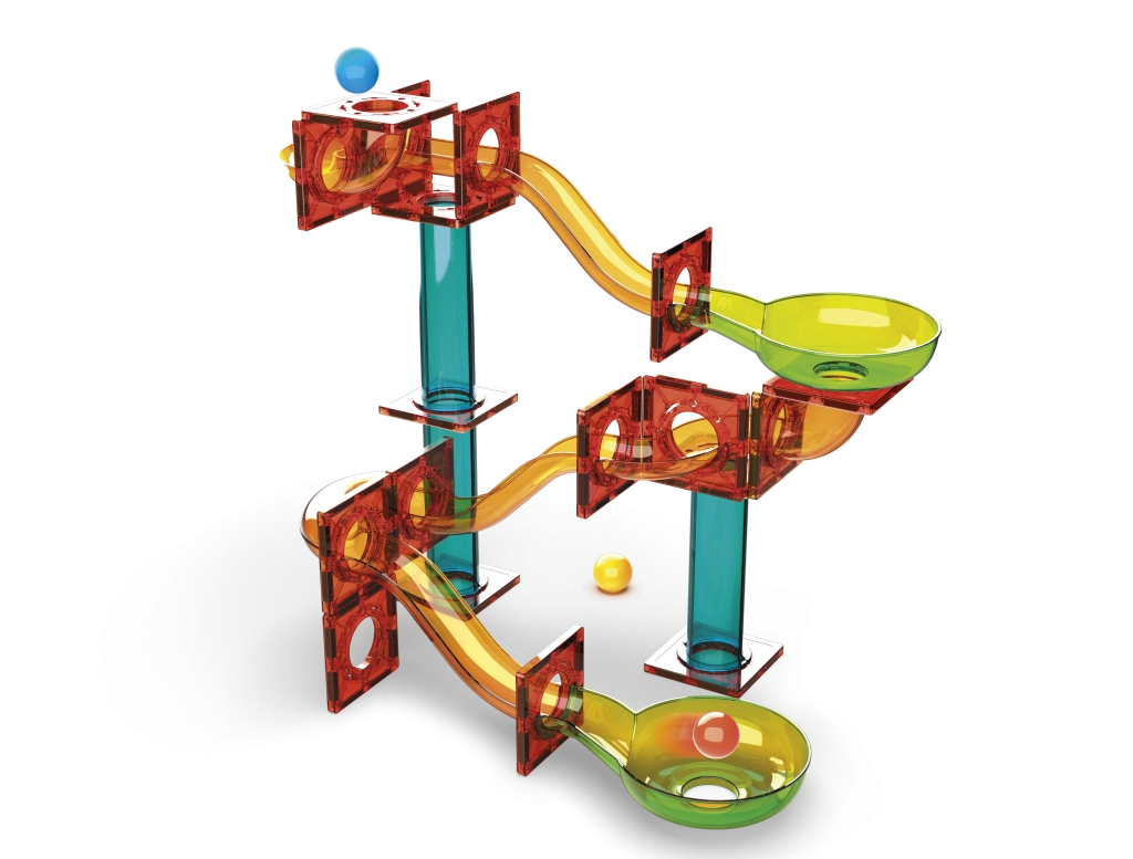 Datorită elementelor magnetice, construcția este stabilă, rapidă și intuitivă. Copiii își exersează motricitatea fină, percepția spațială și răbdarea, în timp ce se joacă și testează diverse combinații de trasee.