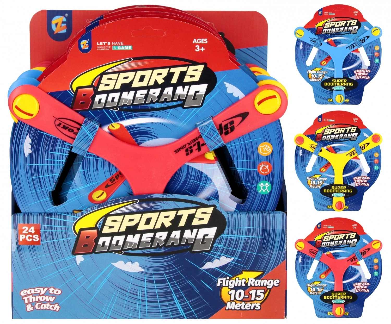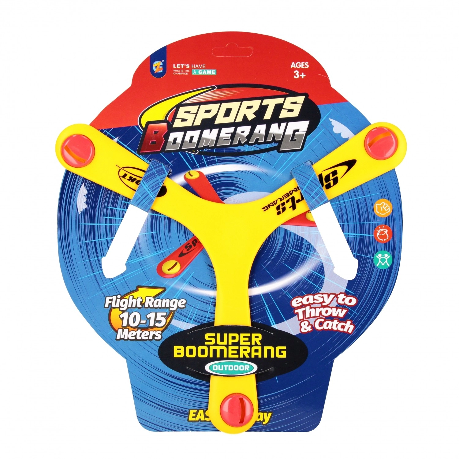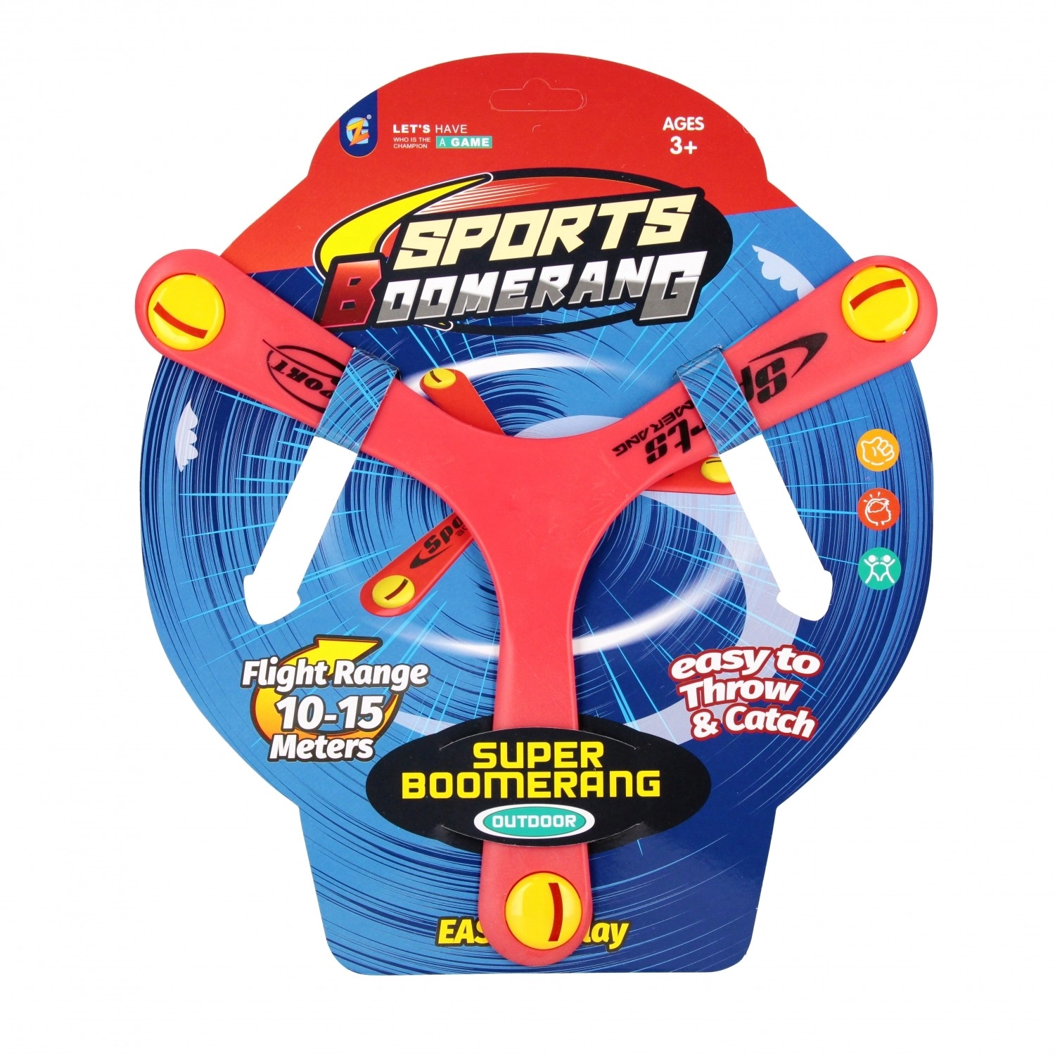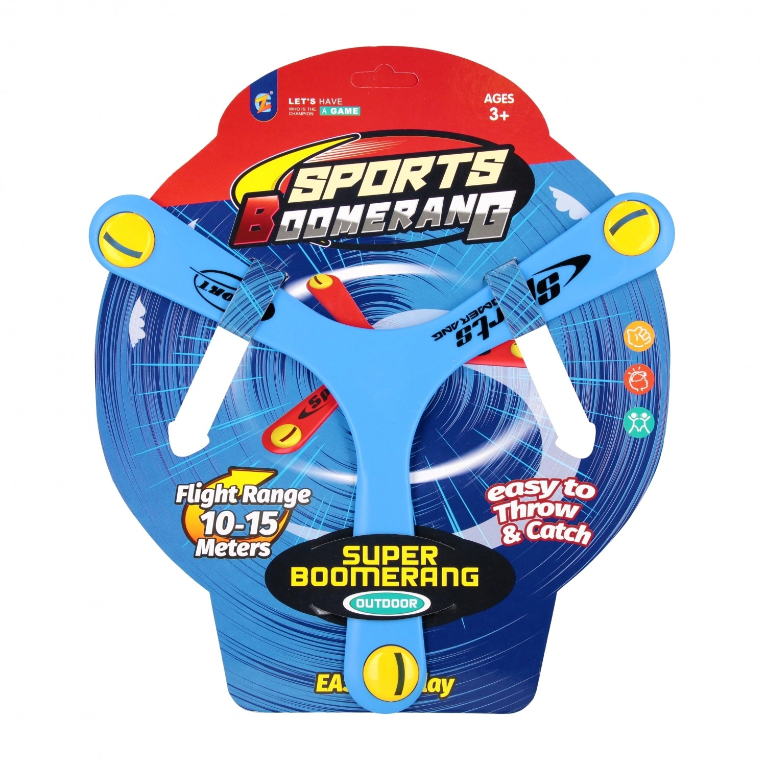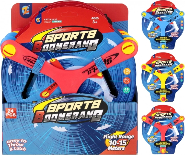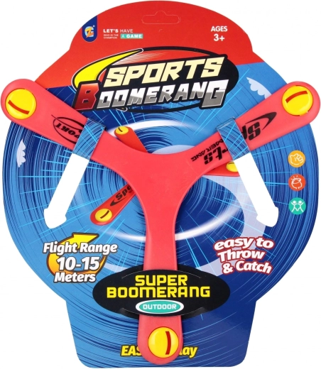 Distanță ideală pentru joacă pe teren sau în grădină. Bumerangul este ușor de observat datorită accente-lor colorate de la capetele brațelor.