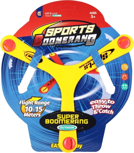 Construcția cu trei brațe și capete echilibrate asigură un zbor stabil și o revenire fiabilă. Copiii învață rapid tehnica corectă de aruncare și prindere.