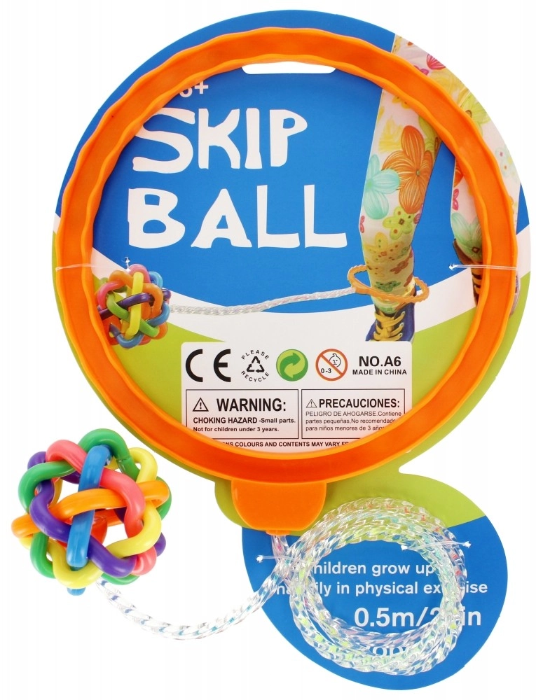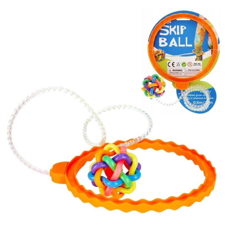 Mingea săritoare la gleznă cu cerc este o jucărie ușoară și colorată, care îi motivează pe copii la mișcare activă. Cercul se pune ușor pe gleznă, mingea pe șnur se învârte, iar copilul sare peste ea cu celălalt picior. În timpul jocului se dezvoltă echilibrul, îndemânarea și coordonarea ochi–picior.