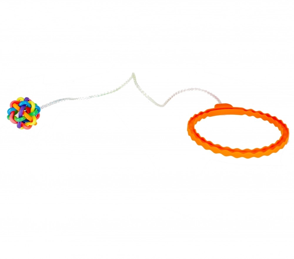 Culori vii pentru vizibilitate mai bună și un cerc din plastic ușor, cu mingea pe șnur, pentru rotire și control facile.