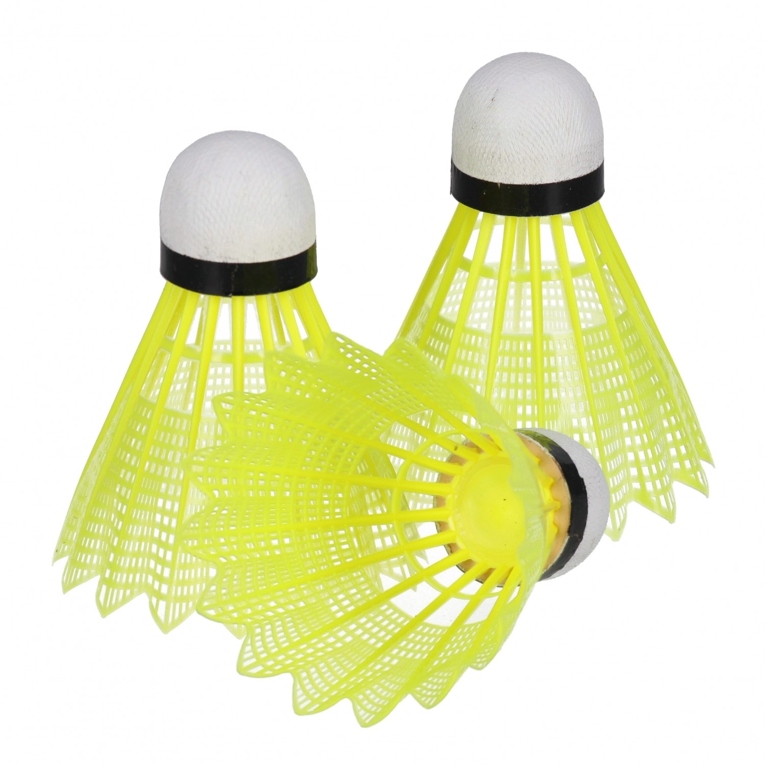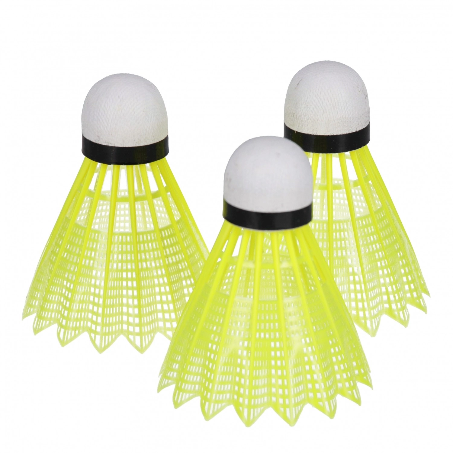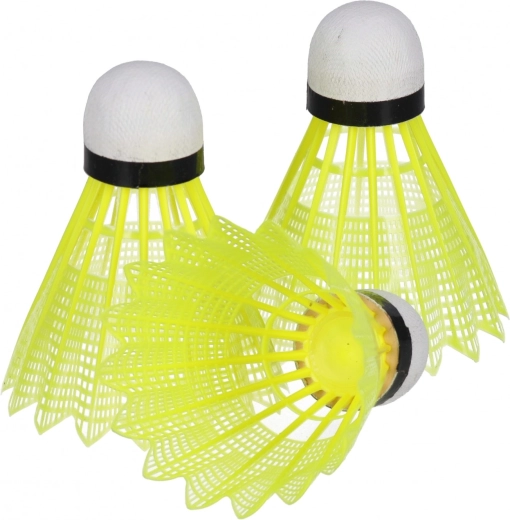 Acest set de fluturași de badminton este conceput pentru un joc recreativ plăcut. Fluturașii din plastic, galben intens, cu cap alb și bandă neagră, sunt bine vizibili în diverse condiții de iluminare și, datorită construcției rezistente, suportă lovituri repetate.