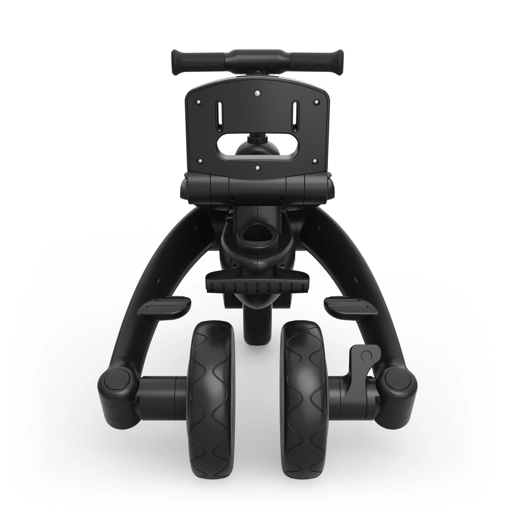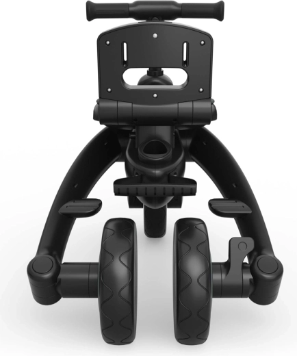 Pentru o plimbare liniștită, nu lipsesc o frână centrală care blochează ambele roți din spate, mânerul telescopic al părintelui pentru ghidare precisă și comutarea lină între antrenament și mers independent. Roțile robuste cu bandaj din cauciuc fac față trotuarelor urbane și parcurilor, iar coșurile/ghiozdănelele practice găzduiesc mărunțișurile de drum.