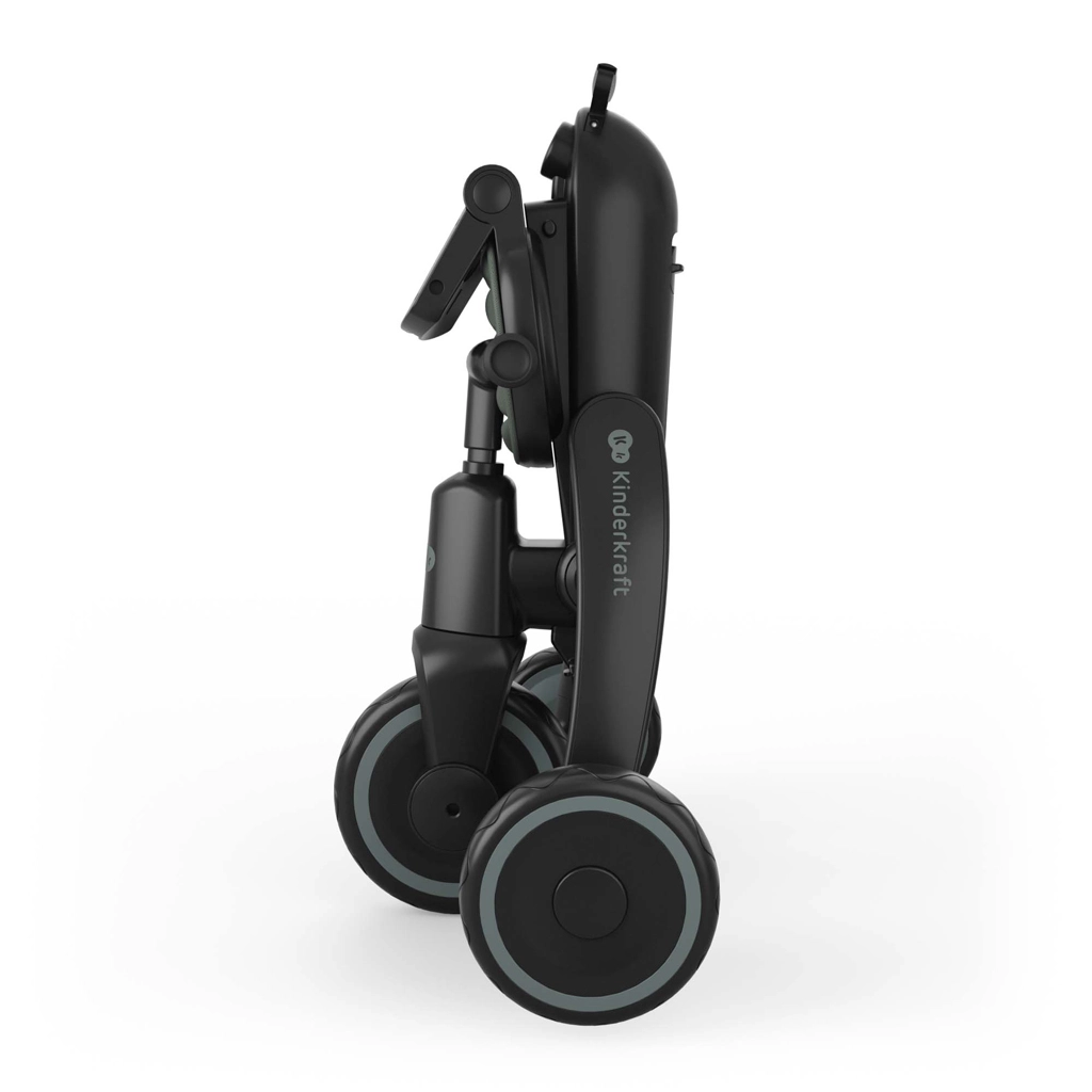 Se pliază în câteva secunde. Dublul sistem de siguranță previne deschiderea accidentală, iar tricicleta pliată poate fi așezată stabil atât vertical, cât și orizontal – ideală pentru apartament, lift și portbagaj.