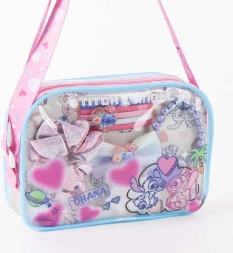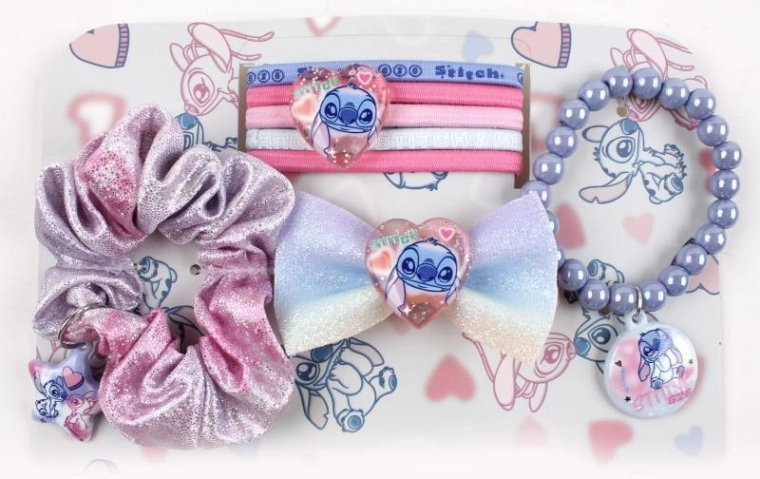 Înveselește fiecare coafură cu un set fermecător de accesorii pentru păr în stilul STITCH. În săculețul practic vei găsi agrafe, elastice, o scrunchie moale și o brățară asortată – toate ideale atât pentru purtarea zilnică, cât și pentru ocazii speciale.