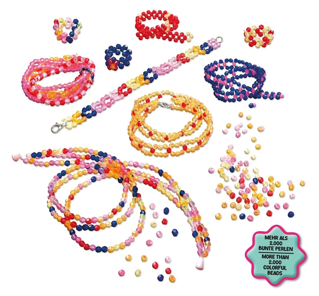 - Peste 2.000 de mărgele: paletă largă de culori și luciu intens pentru rezultate de efect.