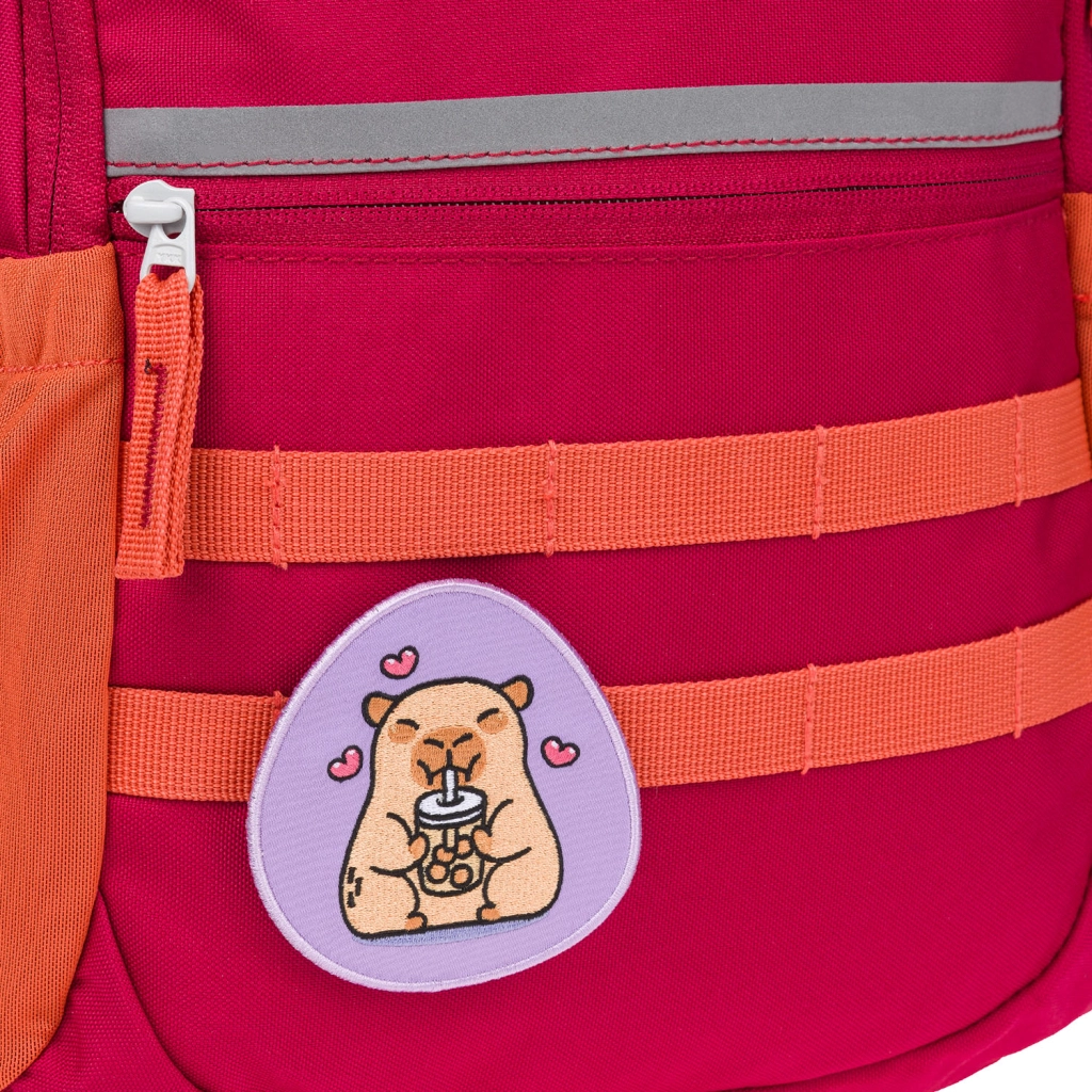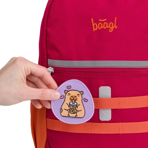 Insignele stilate BAAGLIES cu motiv de capibara transformă rapid aspectul ghiozdanului școlar sau al rucsacului BAAGL. Datorită prinderii cu arici, le poți schimba ușor în funcție de dispoziție, susținând originalitatea și imaginația copiilor. Un accesoriu variabil, cu peste 70 de motive, care asigură că rucsacul nu devine niciodată plictisitor.