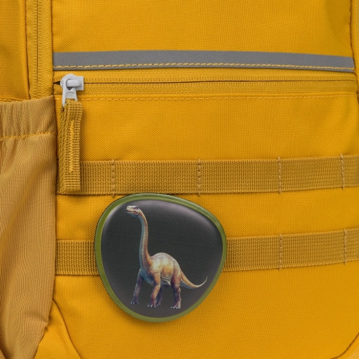 Transformă aspectul rucsacului în câteva secunde. Două insigne rotunde cu tematică de dinozauri se atașează cu ajutorul ariciului – le prinzi, le schimbi și pornești la drum. Copiii își pot adapta astfel companionul școlar exact pe gustul lor.