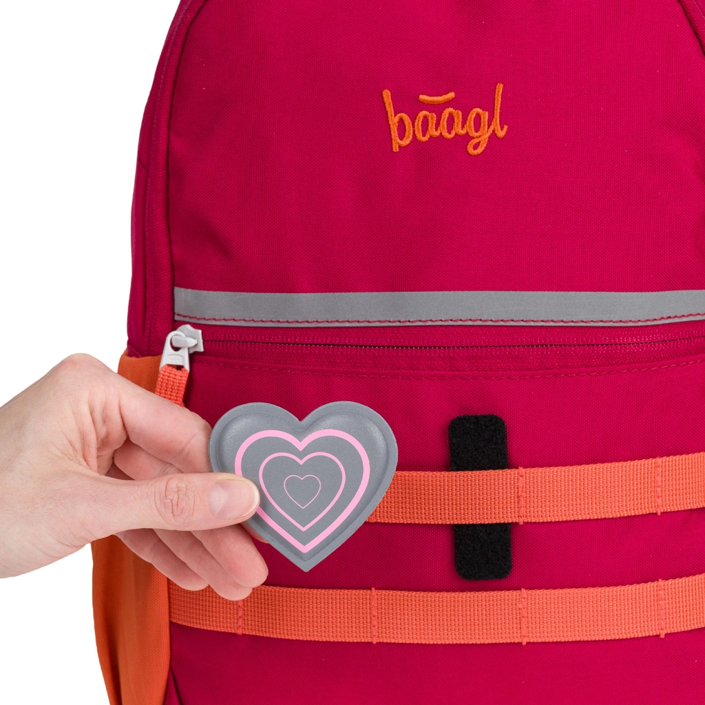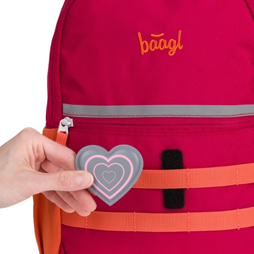 Înviorați ghiozdanul sau rucsacul copiilor cu ajutorul insignelor interschimbabile BAAGL Baaglies cu motiv de inimă. Datorită benzii cu arici, schimbarea este rapidă și ușoară, astfel încât designul poate fi adaptat oricând stării de spirit. Un accesoriu jucăuș și versatil, cu peste 70 de motive, care stimulează imaginația și originalitatea și se asigură că rucsacul nu devine niciodată plictisitor.