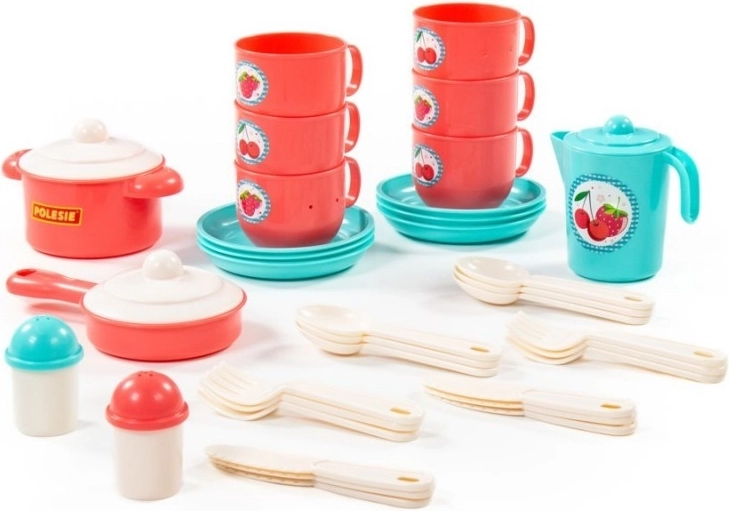 Setul de vase pentru copii Gazdinka este o bază excelentă pentru jocul de gătit și servit masa. Datorită celor 38 de piese, copiii își pot împărți ușor rolurile și învață să colaboreze, să împartă și să comunice. Setul este un accesoriu ideal pentru orice bucătărie de jucărie și oferă ore întregi de distracție creativă.