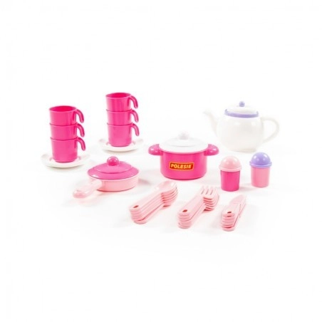 Descoperă setul de masă jucăuș Nastenka, care le permite copiilor să-și aranjeze propria masă și să exerseze situații obișnuite din gospodărie. Datorită echipării complete pentru 6 persoane și celor 38 de piese, este ideal atât pentru joaca individuală, cât și pentru activități de grup.
