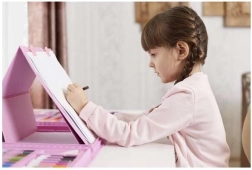 Spațiul pentru desen permite ca doi copii să creeze împreună datorită organizatorului dublu față. Așezați copiii față în față și bucurați-vă de momente creative împreună.