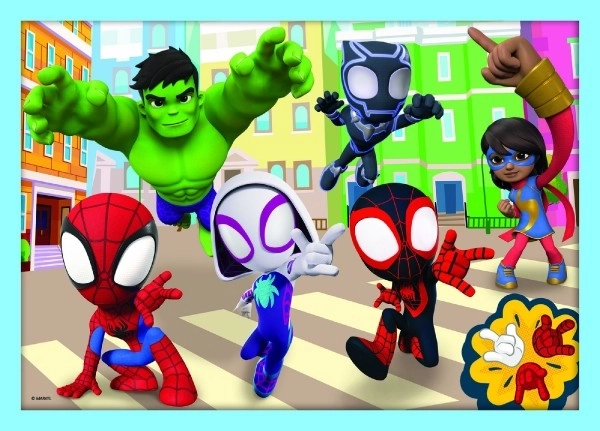 Set pentru copii cu 4 puzzle-uri în 1 cu tematica MARVEL Spidey and His Amazing Friends aduce distracție și învățare pentru copiii de la 3 ani. Nivelurile diferite de dificultate (12, 15, 20 și 24 de piese) susțin dezvoltarea motricității, gândirii logice și răbdării. Realizarea de calitate și materialele ecologice asigură o joacă sigură și de durată.