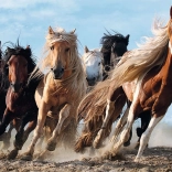 Bucurați-vă de un puzzle care, odată asamblat, surprinde o scenă uimitoare a cailor în galop. Dimensiunile imaginii finale sunt de 68 x 48 cm, oferind dimensiunea ideală pentru a afișa detaliile acestei scene dinamice.