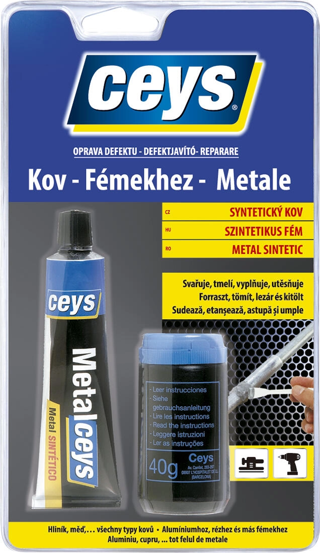 Chit CEYS bicomponent cu încărcătură metalică pentru reparații rapide și durabile ale metalelor. Sudează la rece (de ex. aluminiu, cupru), etanșează, lipește și umple fisuri. Creează un film protector anticoroziv, este rezistent la acizi, detergenți și minerale și, după întărire, poate fi șlefuit, găurit, lustruit și vopsit.