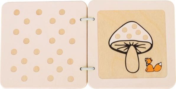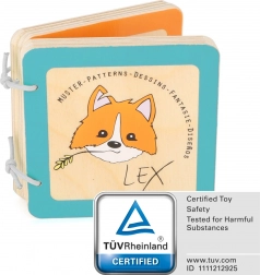 Cărticica senzorială din lemn cu vulpișorul Lex le oferă copiilor o primă întâlnire cu forme simple, decupaje și ilustrații care le stimulează curiozitatea și imaginația. Construcția robustă, marginile netede și inelele metalice asigură o răsfoire sigură și confortabilă chiar și pentru cele mai mici mânuțe.