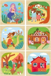 Descoperă farmecul poveștilor clasice cu cuburile din lemn Vilac Povești. Nouă cuburi de calitate, cu ilustrații frumoase, le permit copiilor să asambleze până la șase imagini mari din povești îndrăgite, precum Mica sirenă, Motanul încălțat sau Căsuța din turtă dulce. Jucăria susține gândirea logică, motricitatea fină și percepția vizuală începând de la 2 ani.