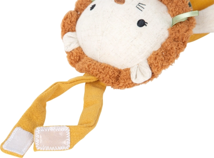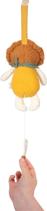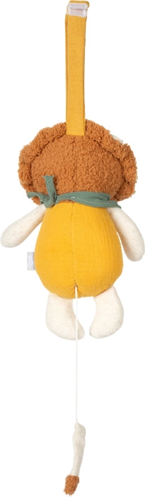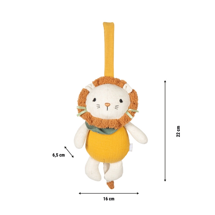 Drăgălașul leuț textil de la small foot este o jucărie pufoasă cu mecanism muzical, care, la tragerea de șnur, redă melodia liniștitoare Twinkle, Twinkle, Little Star. Datorită bucla practică, îl atașezi ușor de pătuț, cărucior sau masa de înfășat. Plușul și muselina moi susțin percepția senzorială a bebelușilor și induc un sentiment de siguranță încă de la naștere.