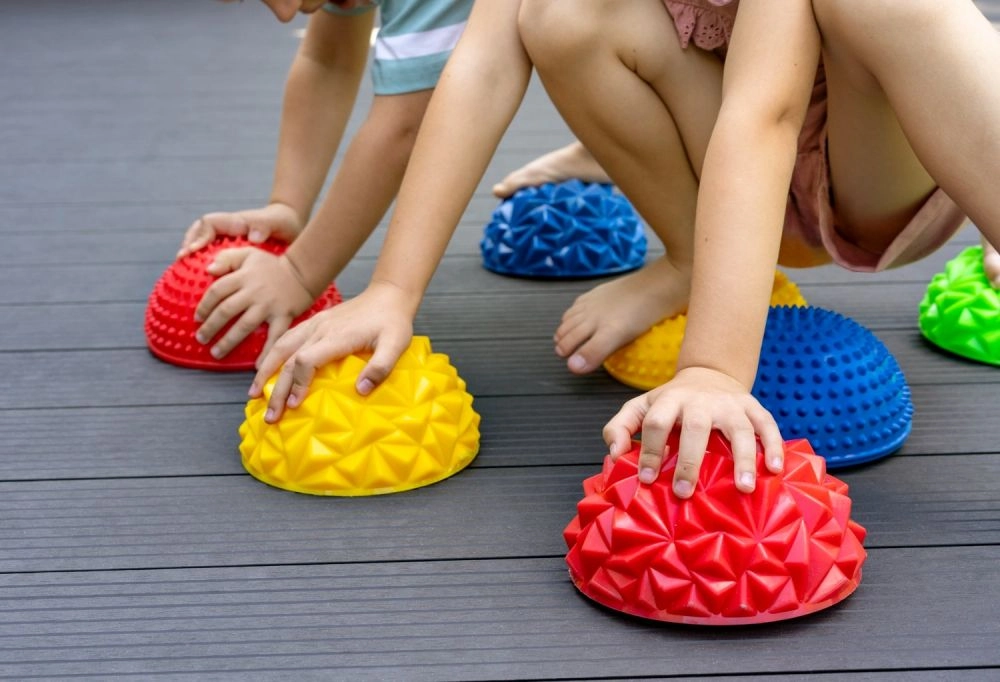 Emisferele senzoriale de echilibru contribuie în mod fiabil la dezvoltarea echilibrului, propriocepției și motricității fine. Textura lor pronunțată, dar plăcută, stimulează tălpile și palmele, susține postura corectă și activează sistemul profund de stabilizare. Datorită construcției durabile, cu capacitate de încărcare de până la 100 kg, sunt potrivite atât pentru copii, cât și pentru adulți.