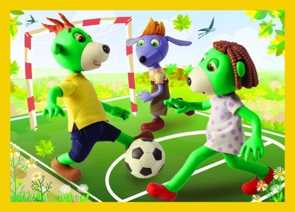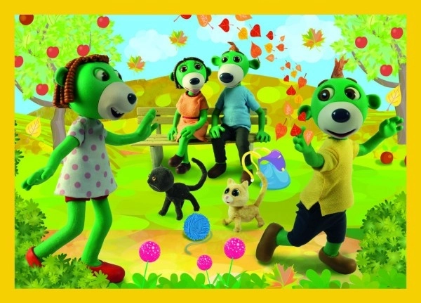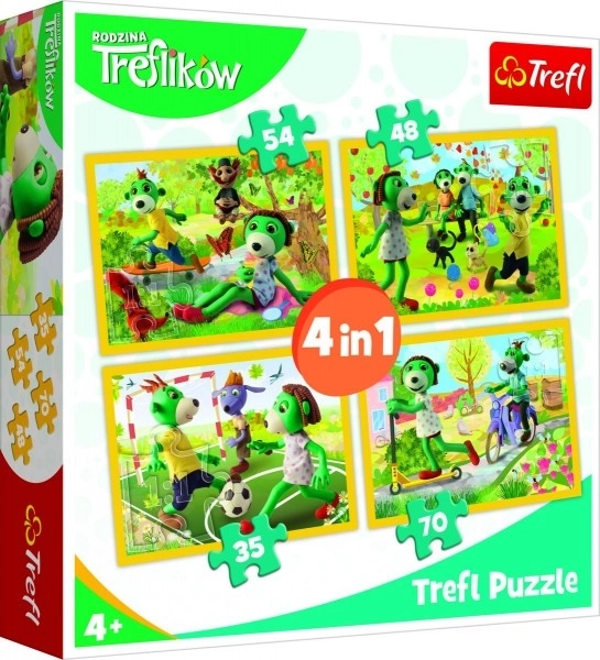 Faceți-le bucurie copiilor cu setul colorat de 4 puzzle-uri independente cu teme din îndrăgitul serial Familia Treflík. Fiecare imagine are un număr diferit de piese, astfel încât atât începătorii, cât și cei puțin mai avansați se pot bucura de asamblare. Datorită hârtiei speciale care reflectă lumina, piesele se disting mai bine, iar asamblarea este mai plăcută.