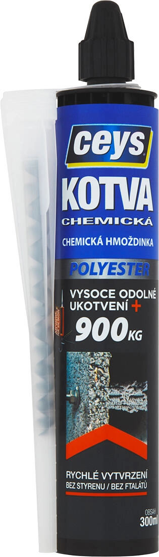 Ancoră chimică universală bicomponentă CEYS pentru fixare fiabilă în suporturi goale și pline, precum cărămidă, beton, piatră sau lemn. Întărește rapid în 6 minute, fără expansiune și este fără stiren, fiind ideală pentru montaj lângă muchii și pe suprafețe sensibile. Rezistența ridicată la sarcină de 900 kg/cm² asigură prinderea fermă a șuruburilor, tije-lor și construcțiilor atât la interior, cât și la exterior.