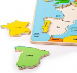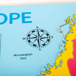 Puzzle-ul din lemn cu harta Europei este o jucărie educativă ideală pentru copiii curioși. Fiecare piesă este clar marcată și se potrivește perfect în placa de bază, astfel încât copiii învață cu ușurință să recunoască formele și poziția fiecărei țări. Execuția de calitate asigură o durată lungă de viață și joacă în siguranță.