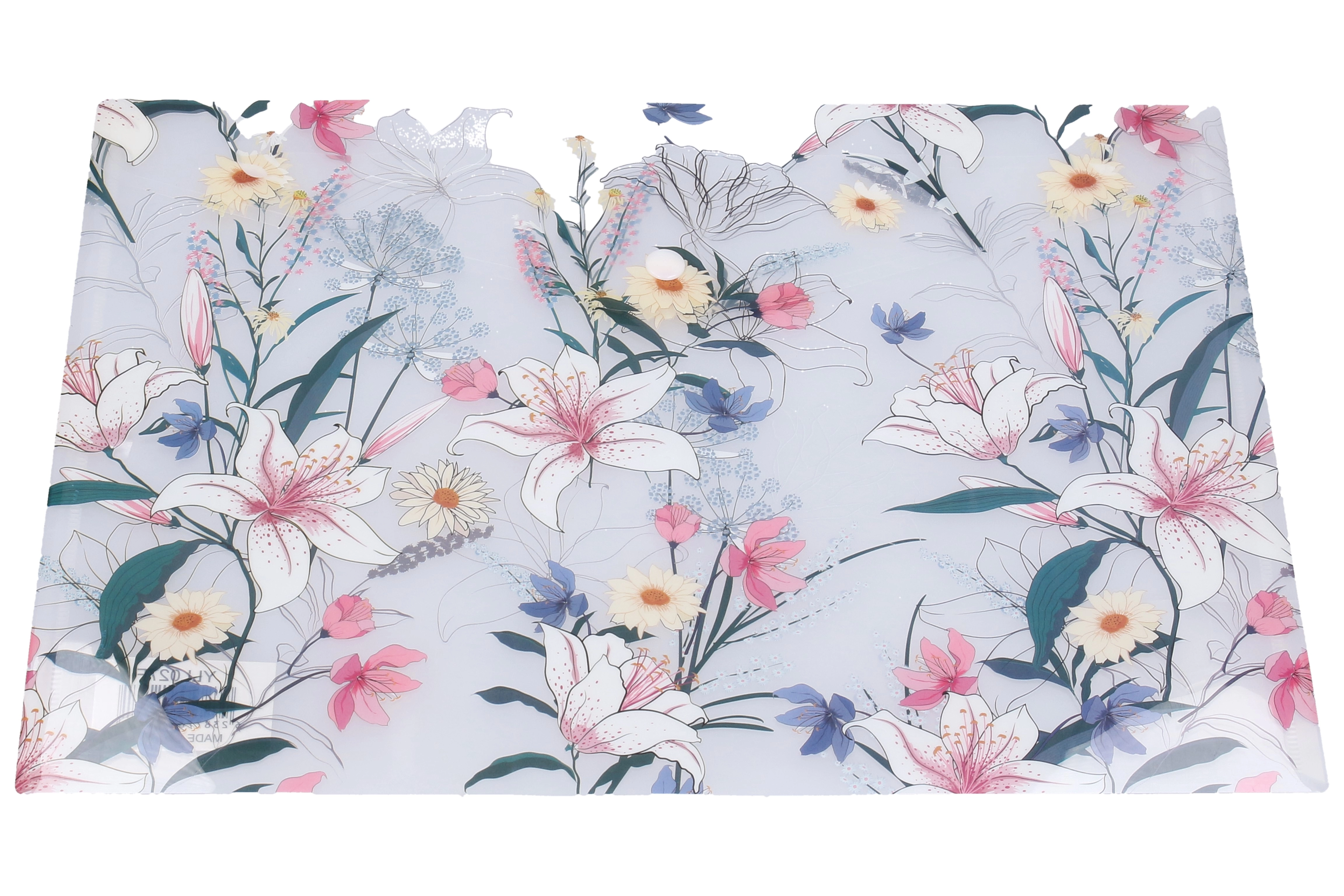 Mapa ușoară și rezistentă, cu capsă, este ideală pentru școală, birou și călătorii. Închiderea sigură cu capsă păstrează conținutul la locul lui, iar dimensiunea compactă de 24 × 16,8 cm încape în geantă sau rucsac.