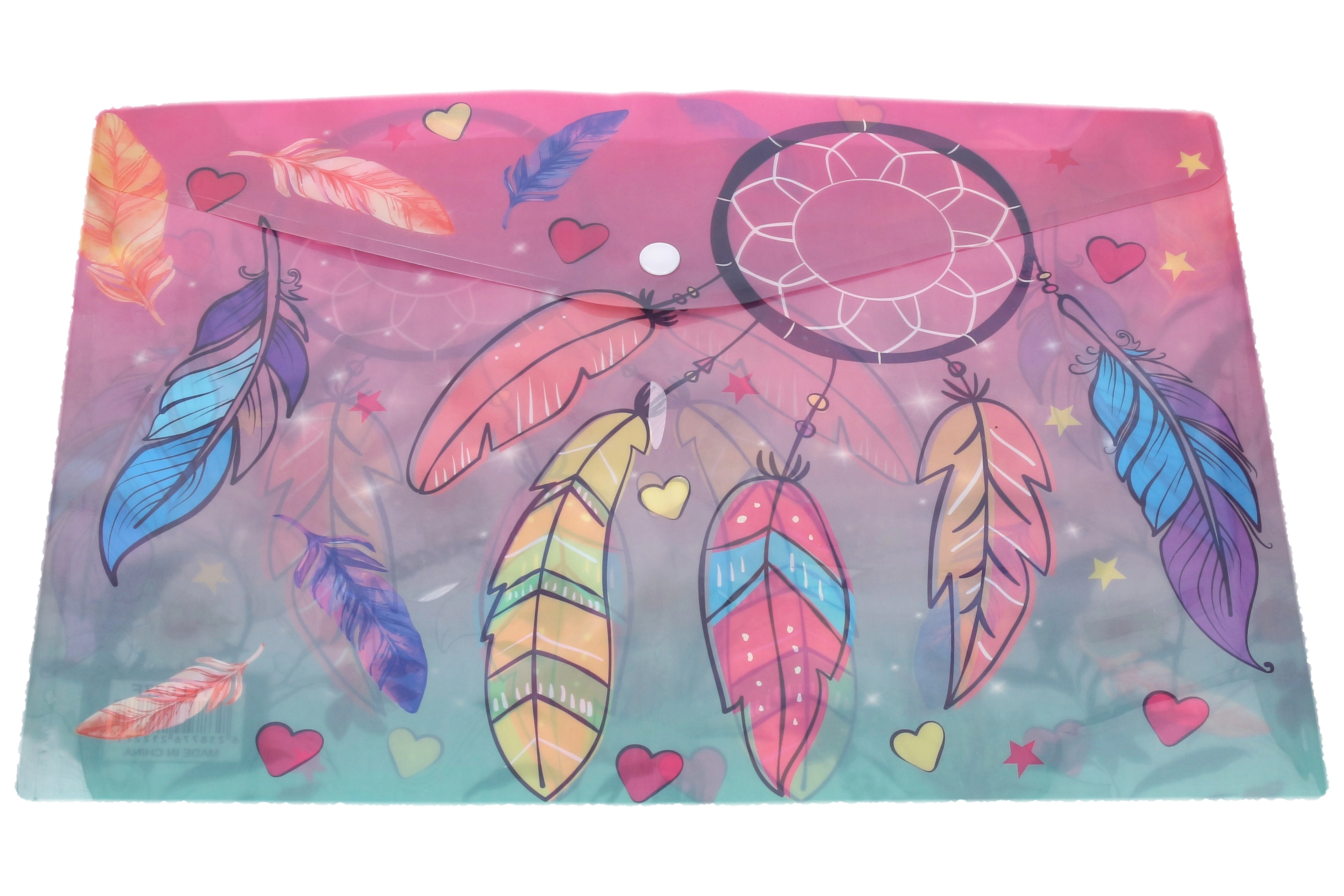 Mapă practică din plastic cu capsă, în format compact 16,5 × 12 cm, păstrează în siguranță documentele mici, chitanțele și cardurile. Datorită închiderii sigure cu capsă conținutul nu se împrăștie, execuția semitransparentă permite orientare rapidă, iar mixul de modele stilate adaugă farmec organizării.