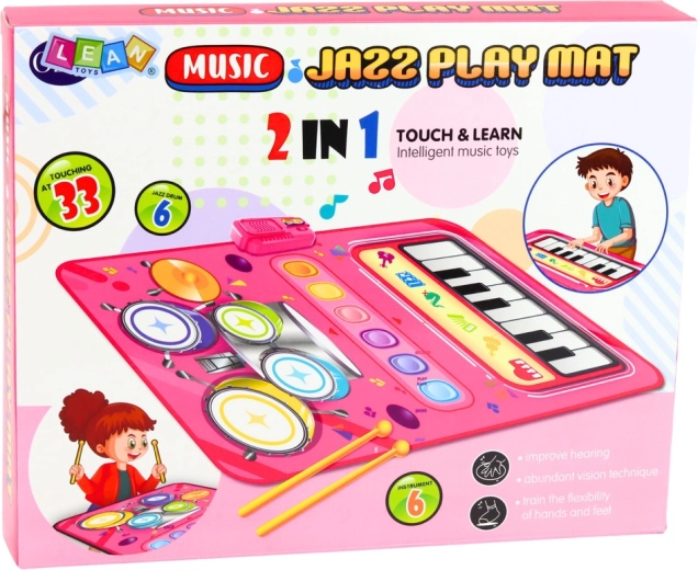 Clapele de pian și padurile de tobe pe același covoraș dezvoltă ritmul, auzul muzical și coordonarea mișcărilor – ideal pentru primii pași în muzică.