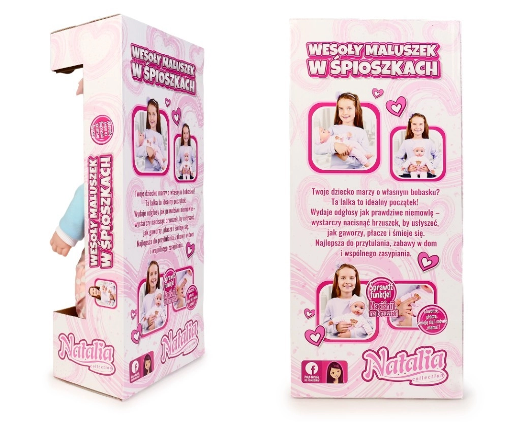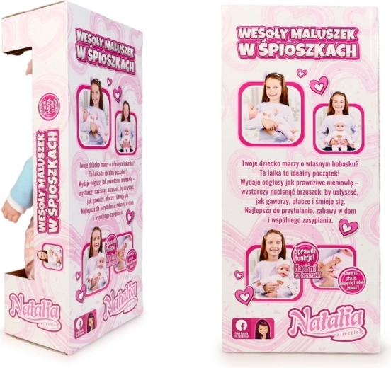 Adorabilul bebeluș de la marca Natalia va încânta orice copil. Păpușa cu corp moale de 45 cm, la apăsarea burticii, emite sunete realiste – râde, plânge, gângurește și spune „mama” și „tata”. O alegere excelentă pentru dezvoltarea empatiei și jocurile de îngrijire.