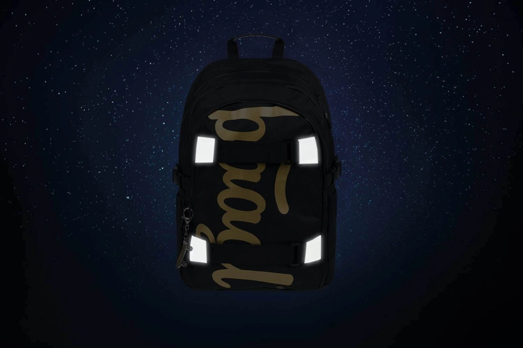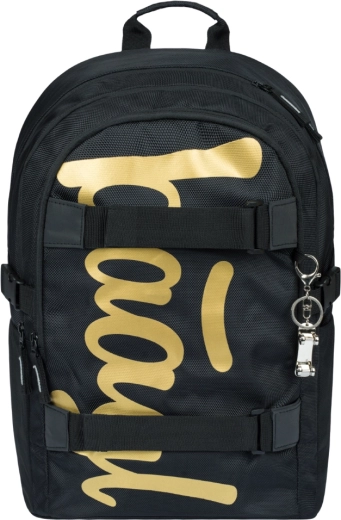 Set școlar BAAGL stilat în designul Skate Gold care combină un rucsac ergonomic cu chingi pentru skateboard, penar rigid, săculeț practic pentru spate, borsetă ultra-ușoară și husă de protecție pentru laptop de 15". Materiale rezistente, organizare inteligentă, impermeabilizare și elemente reflectorizante pentru confort, siguranță și durabilitate – echipare ideală pentru școală și timp liber.
