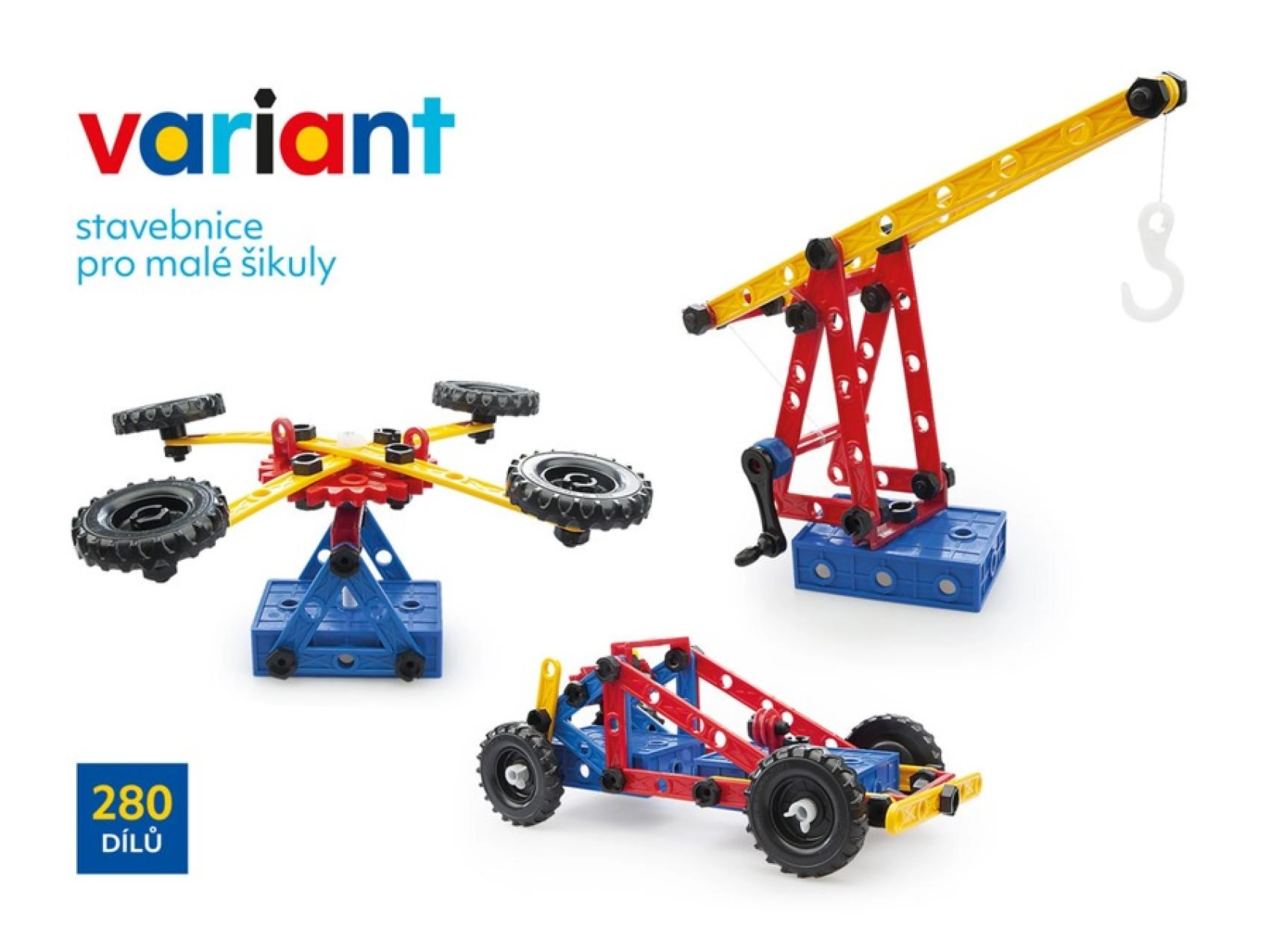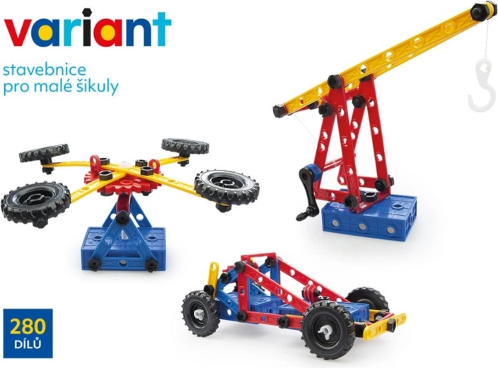 Descoperă lumea creativă cu setul de construcție din plastic Variant cu 280 de piese, care dezvoltă motricitatea fină, imaginația spațială și gândirea logică. Datorită șuruburilor și piulițelor rezistente, panourilor perforate mari și roților dințate cu lanț, copiii pot construi mașini, avioane și bărci – iar apoi să le reconstruiască la nesfârșit.