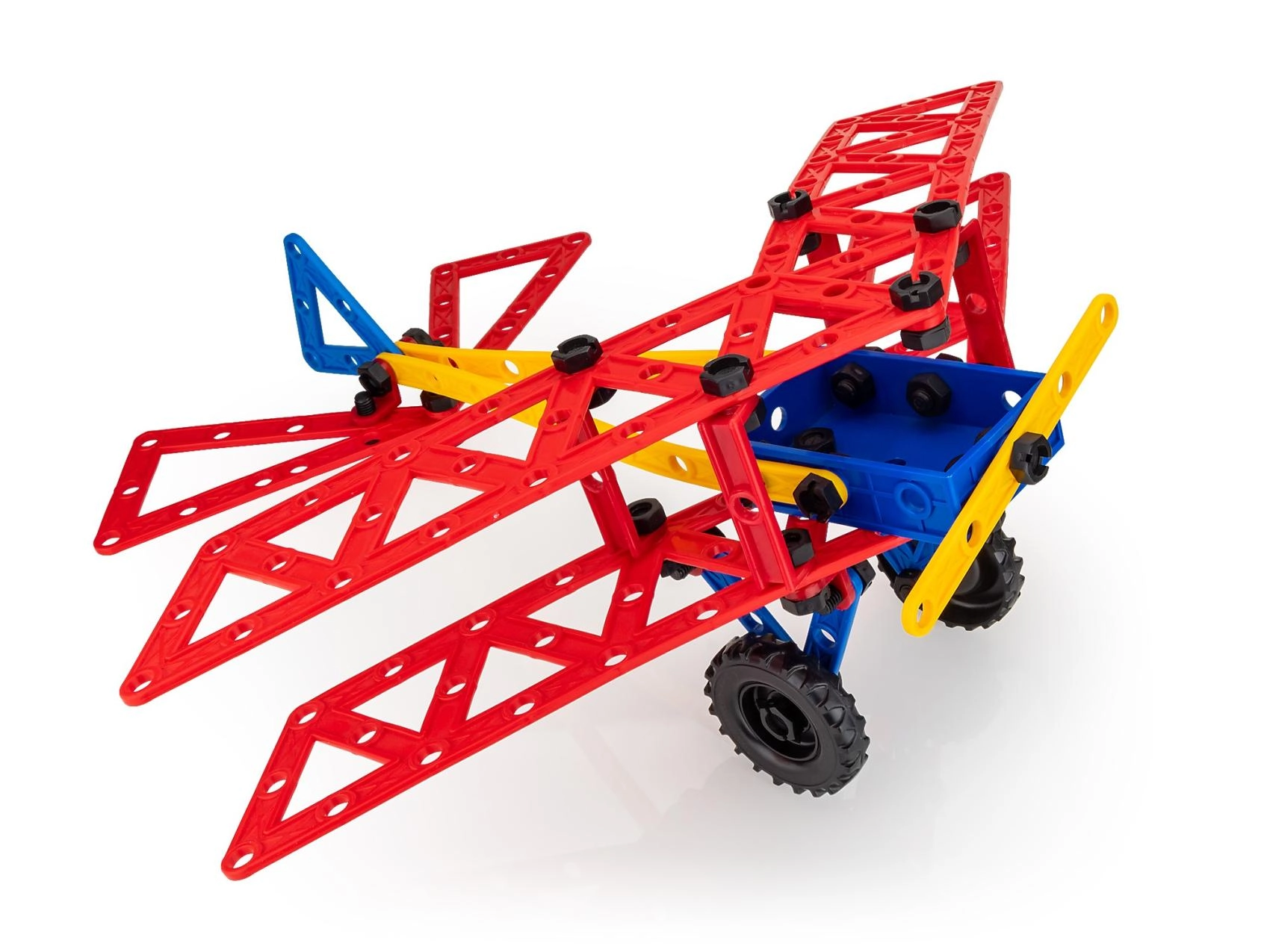 Panourile perforate mari, lonjeroanele și conectorii permit asamblarea unei game variate de modele, de la avion până la barcă – imaginația nu are limite.