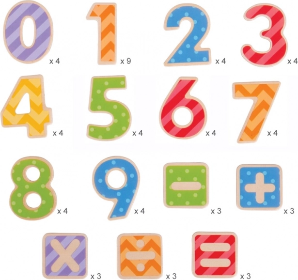 În acest set, veți găsi un total de 56 de piese, incluzând cifre de la 0 la 9 și diferiți operatori matematici. Cifrele magnetice sunt perfecte pentru tablă, permițând copiilor să creeze cu ușurință exemple și povești cu numere. Acestea ajută la dezvoltarea dexterității și concentrării, iar utilizarea lor este sigură.