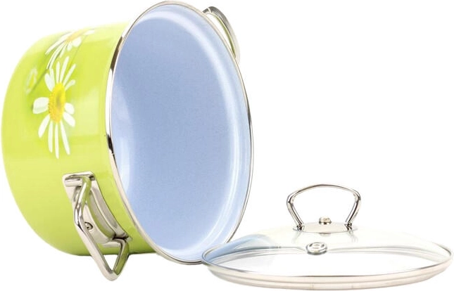 Gama DAISY îți înveselește bucătăria cu o culoare proaspătă și decor floral, în timp ce emailul interior granitic gri-albăstrui se numără printre cele mai rezistente de pe piață. Producția tradițională cehă a mărcii BELIS se bazează pe rețete dezvoltate de experți de zeci de ani, astfel încât obții vase cu durată de viață lungă și proprietăți funcționale excelente.