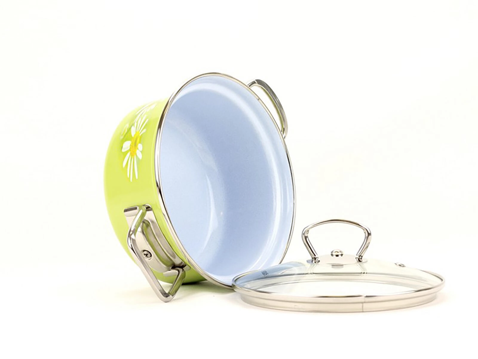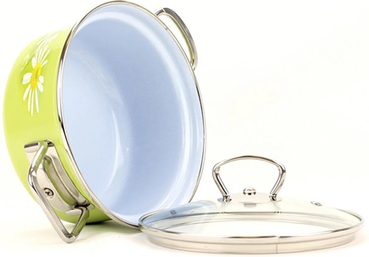 Gama apreciată BELIS Daisy îmbină designul atemporal cu practicitatea pentru orice bucătărie. Smalțul interior granit albastru-gri se numără printre cele mai rezistente de pe piață, se curăță ușor și asigură gătit 100% sigur pentru sănătate. Capacul din sticlă permite monitorizarea comodă a preparatelor, iar mânerele din inox oferă o prindere fermă și sigură.