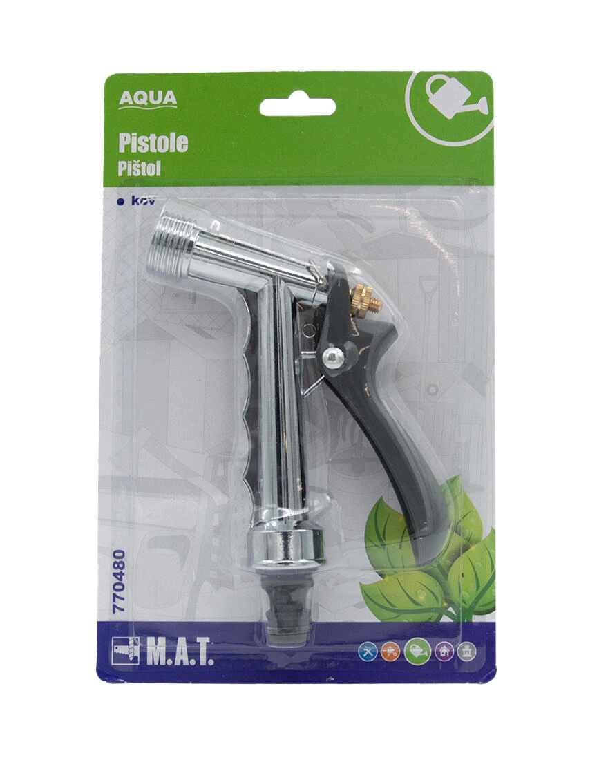 Pistolul metalic AQUA este conceput pentru utilizare zilnică în grădină. Construcția metalică asigură o rezistență ridicată la uzură și la deteriorări mecanice, în timp ce forma ergonomică facilitează o prindere confortabilă chiar și în cazul lucrului prelungit.