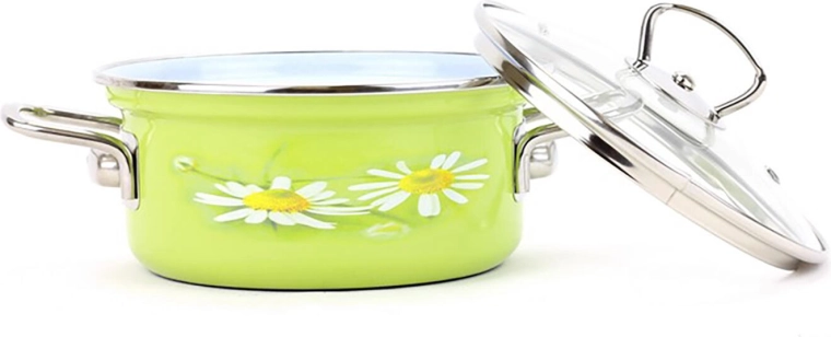 Castronul BELIS Daisy se remarcă prin combinația de email clasic și design modern cu decor floral. Interiorul din email granit albastru-gri se numără printre cele mai rezistente suprafețe, se curăță excelent și este foarte igienic. Capacul din sticlă permite urmărirea comodă a preparării mâncărurilor fără pierderi inutile de căldură.