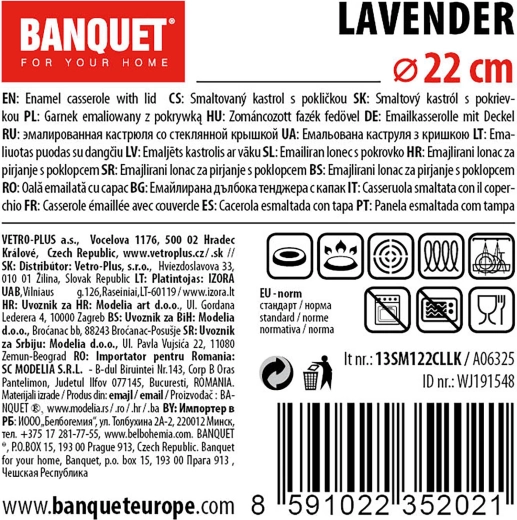 Descoperiți castronul practic și stilat Lavender, care vă va face gătitul mai plăcut. Datorită volumului de 2,9 l și diametrului de 22 cm, este excelent pentru prepararea supelor, sosurilor și garniturilor. Suprafața emailată cu glazură albă este ușor de întreținut, iar decorul exterior oferă bucătăriei un aspect distinct.