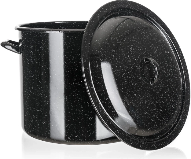 Suprafața emailată durabilă este igienică, neabsorbantă și ușor de curățat. Mânerele laterale late asigură o manipulare sigură. Oala este compatibilă cu toate plitele obișnuite cu excepția inducției.